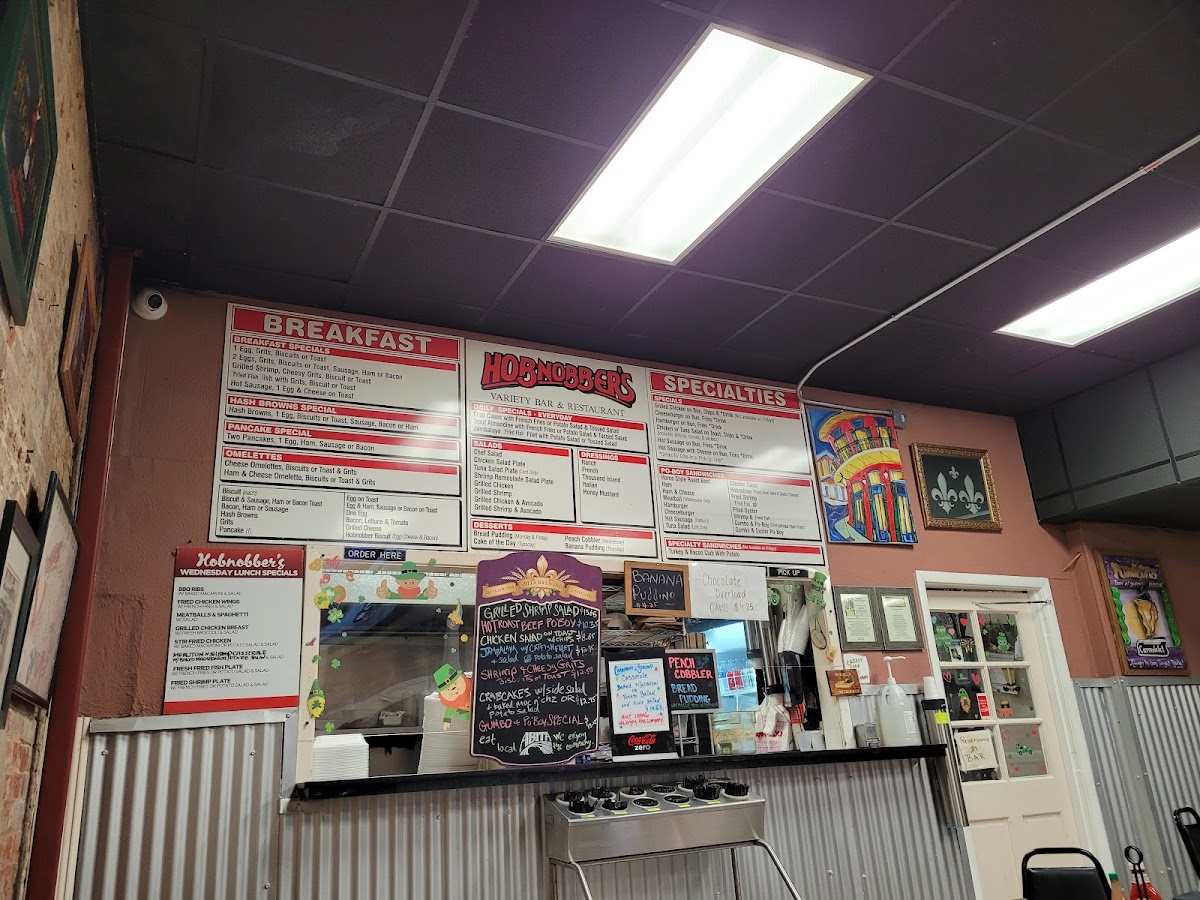 Welcome to Hobnobber's Variety Bar & Restaurant, nestled at 139 Carondelet St in the heart of New Orleans. This hidden gem boasts an inviting menu that celebrates authentic Southern cuisine. Diners can indulge in a variety of offerings, including crispy fried fish paired with flavorful jambalaya and their highly praised crab cakes that complement rich mac and cheese. Each dish resonates with comfort and tradition, perfect for those seeking a hearty meal.
